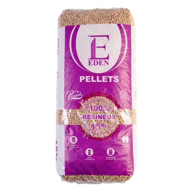EDEN Pellets Premium -puupelletit ovat korkealaatuinen ja ympäristöystävällinen lämmitysratkaisu, valmistettu 100 % luonnollisesta havupuusta Ranskassa. Pelletit tuotetaan yksinomaan käsittelemättömästä havupuusahajätteestä, ilman lisäaineita tai sideaineita, mikä takaa puhtaan ja tasalaatuisen lopputuotteen.