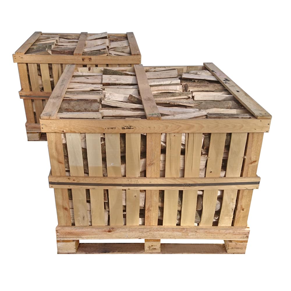 Polttopuiden pituus on 26–29 cm ja halkaisija 9–13 cm, mikä tekee niistä ihanteellisia tulisijoihin, puu-uuneihin ja muihin puulämmitysjärjestelmiin. Kaksi päällekkäin pinottua puulaatikkoa vastaa 2 pinokuutiota polttopuuta, mikä on noin 3 irtokuutiota – saat enemmän lämpöenergiaa pienemmässä tilassa.